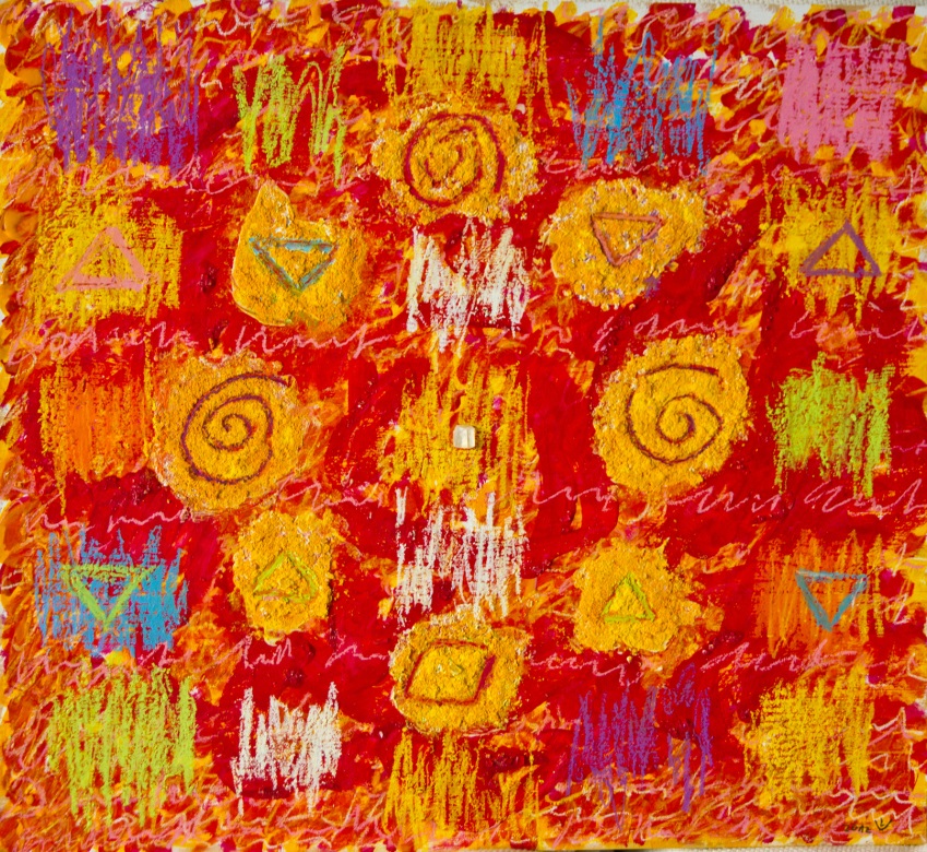 "Ups and Downs of Life" Mischtechnik (Acrylfarben, Kreide, Pigmente, Sand, farbloser Cacit), 40 x 40 cm
