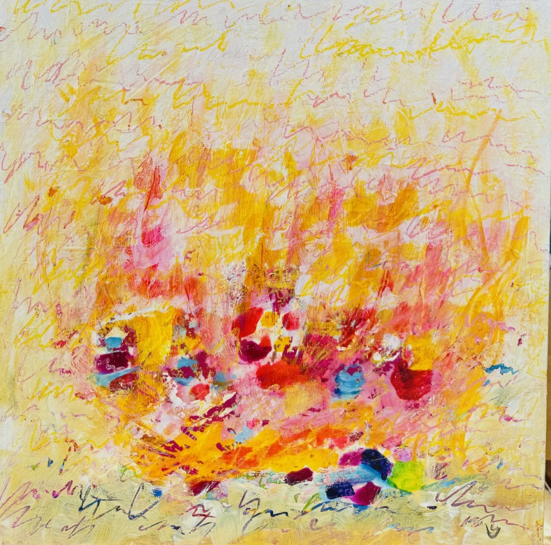 "Fire of Emotions" Mischtechnik (Acrylfarben, Kreiden, Acryltuschen) 40 x 40 cm