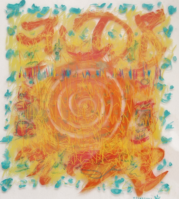 Acrylfarben, Kreide auf Acrylglas, 40 x 44 cm