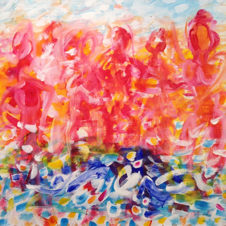 "Tanzende Lichtfiguren 2" Mischtechnik (Acrylfarben, Kreide) 80 x 80 cm