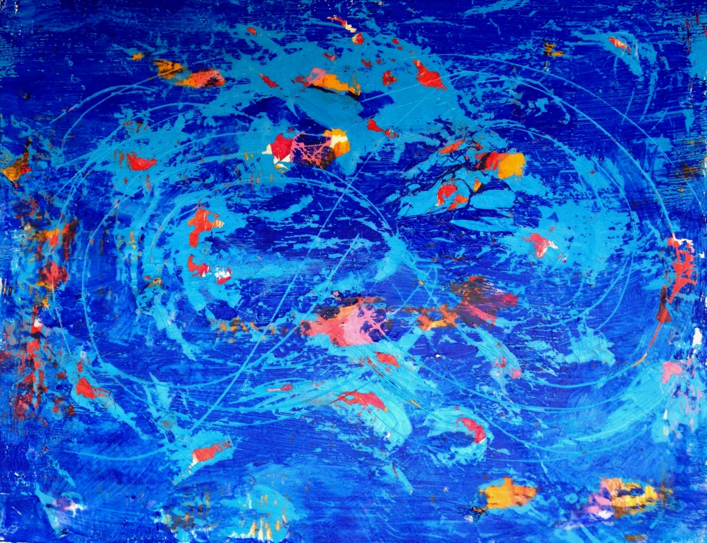 "Infinite blue", Acrylfarbe, Pigmente, Kreide, Wachs, 54 x 46 cm