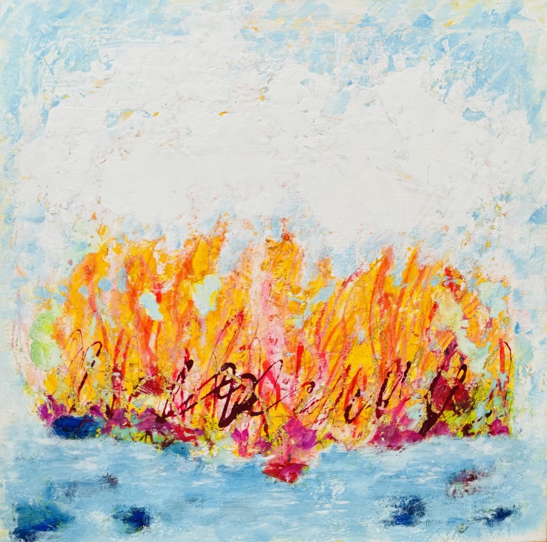 "Glowing up in winter" ยท Mischtechnik (Acrylfarben, Kreiden, Acryltuschen, Blattgold, Wachs auf Leinwand) 80 x 60 cm