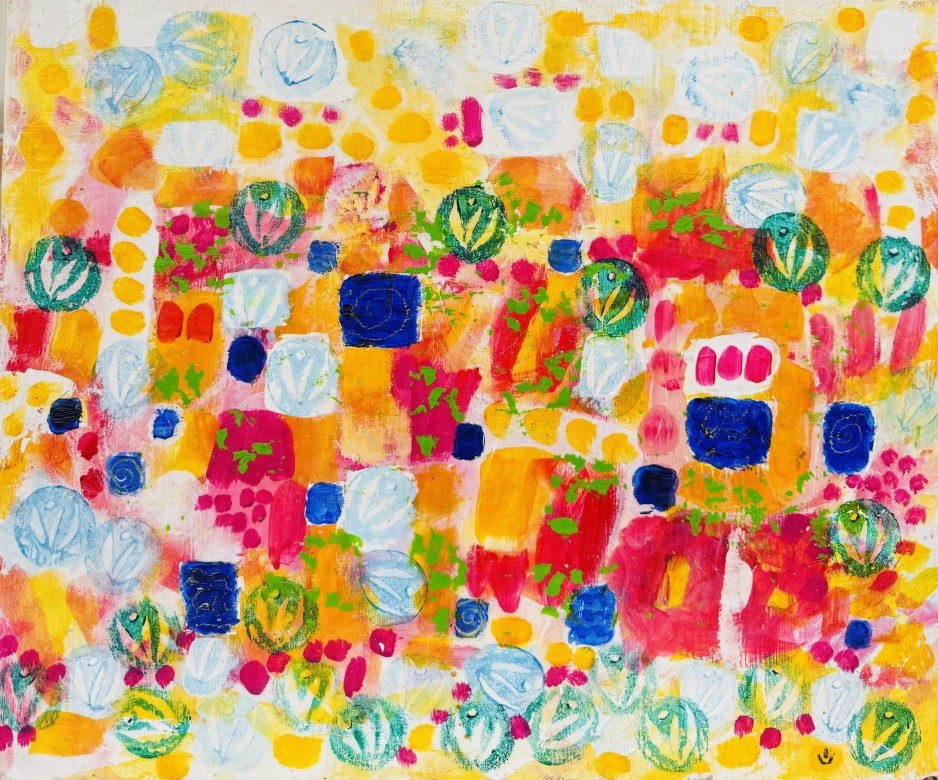 "Hommage to Paul Klee", Mischtechnik (Acrylfarben, Kreiden, Wachs auf Holz), 55 x 45 cm